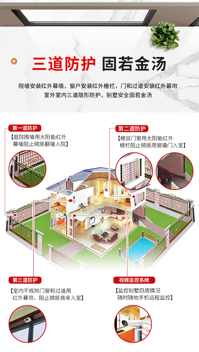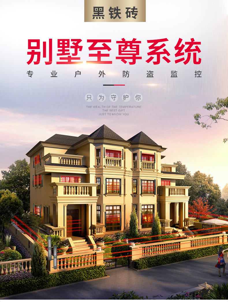 黑鐵磚安防 別墅安全系統 光能無線紅外對射 網上批發 工廠直銷 紅外對射式電子圍欄 周界報警系統 入侵系統 無線遠程報警 專業對射生產廠家  適用于別墅、工廠、學校、炸藥庫、智慧工地、加油加氣站、部隊等任何有報警需求的場所
